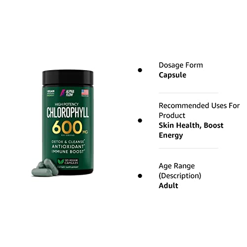 - ✅ Pure Chlorophyll Vitamins – Alpha Flow Chlorophyll Organic Supplement provides you with 600 mg of essential for your body antioxidants and vitamins from greens just per 1 serving. This natural superfood is the finest solution to increase your energy levels, support immunity, and cleanse your body from toxins! The simple way to switch to the Healthier Lifestyle!