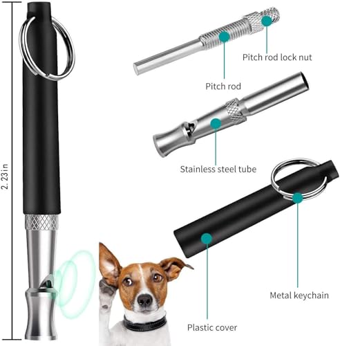 • 【HOW TO TRAIN YOUR DOG?】: Dog Whistle, different dogs respond to different frequencies. Dog training whistle has a nut and screw that would adjust thebfrequency when turned. Notice your dog’s reaction to each setting until your dog exhibits the strongest reaction. Please keep your whistle command consistent, when your dog does it right, give him a snack reward, approach to make your dog a listening and obedient friend.