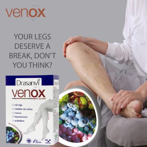 DRASANVI VENOX 45 Capsules – Health Care – Vitamins & Dietary Supplements – Vitamins – Multivitamins – Legs – Red Vine – Blueberries – Blackcurrant – Vitamins A, C and E – Gluten Free – Vegan