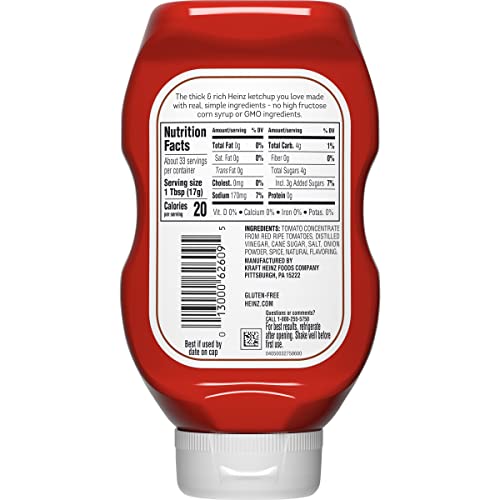 Details: Simply Heinz Tomato Ketchup is the thick & rich ketchup you love made simply with the highest quality ingredients. This simple tomato ketchup is free of high-fructose corn syrup, while still full of home-grown Heinz taste. Use it to create the perfect hot dog or hamburger, or pair it with chicken nuggets and fries for a delicious dipping sauce. Simply Heinz Tomato Ketchup is packed in an easy ketchup squeeze bottle with a flip cap for clean and easy serving, making it the perfect bottled ketchup for family picnics, barbecues, and camping trips. Whatever the occasion, youll feel good serving your family Simply Heinz Tomato Ketchup.