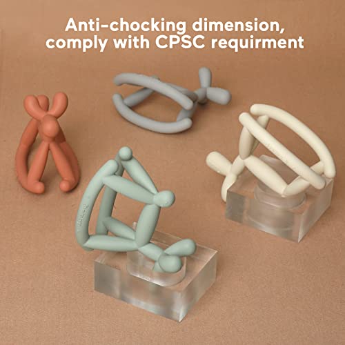 - WEARABLE STRUCTURE: Jelly baby teether is made up from several easy-holding silicone sticks also can hold on wrist to reduce frequency of accidental dropping in use, crooked basement decrease contact surface to table to keep dust or dirt away at large extent.