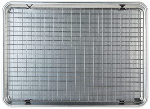 Details: Professional pastry chefs and bakeries rely on pure aluminum for consistently perfect results. You can do the same with our commercial quality Naturals Bakeware collection. These premium pans will never rust and they produce evenly browned baked goods every time. Encapsulated galvanized steel rims prevent warping. Use pan and grid together for crisping in the oven or separate as a baking pan and cooling rack.