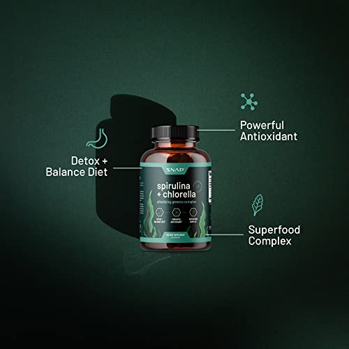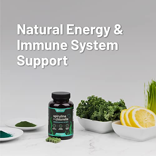 Organic Spirulina Chlorella Capsules – Spirulina Green Superfoods for Heart Support, Natural Energy – Spirulina Supplement, Spirulina and Chlorella Powder, Plant Vitamins (120 Capsules)
