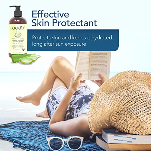 PURA D’OR Organic Aloe Vera Gel Lemongrass (16oz) All Natural – ZERO Artificial Preservatives – Deeply Hydrating & Moisturizing – Sunburn, Bug Bites, Rashes, Small Cuts, Eczema Relief – Skin & Hair