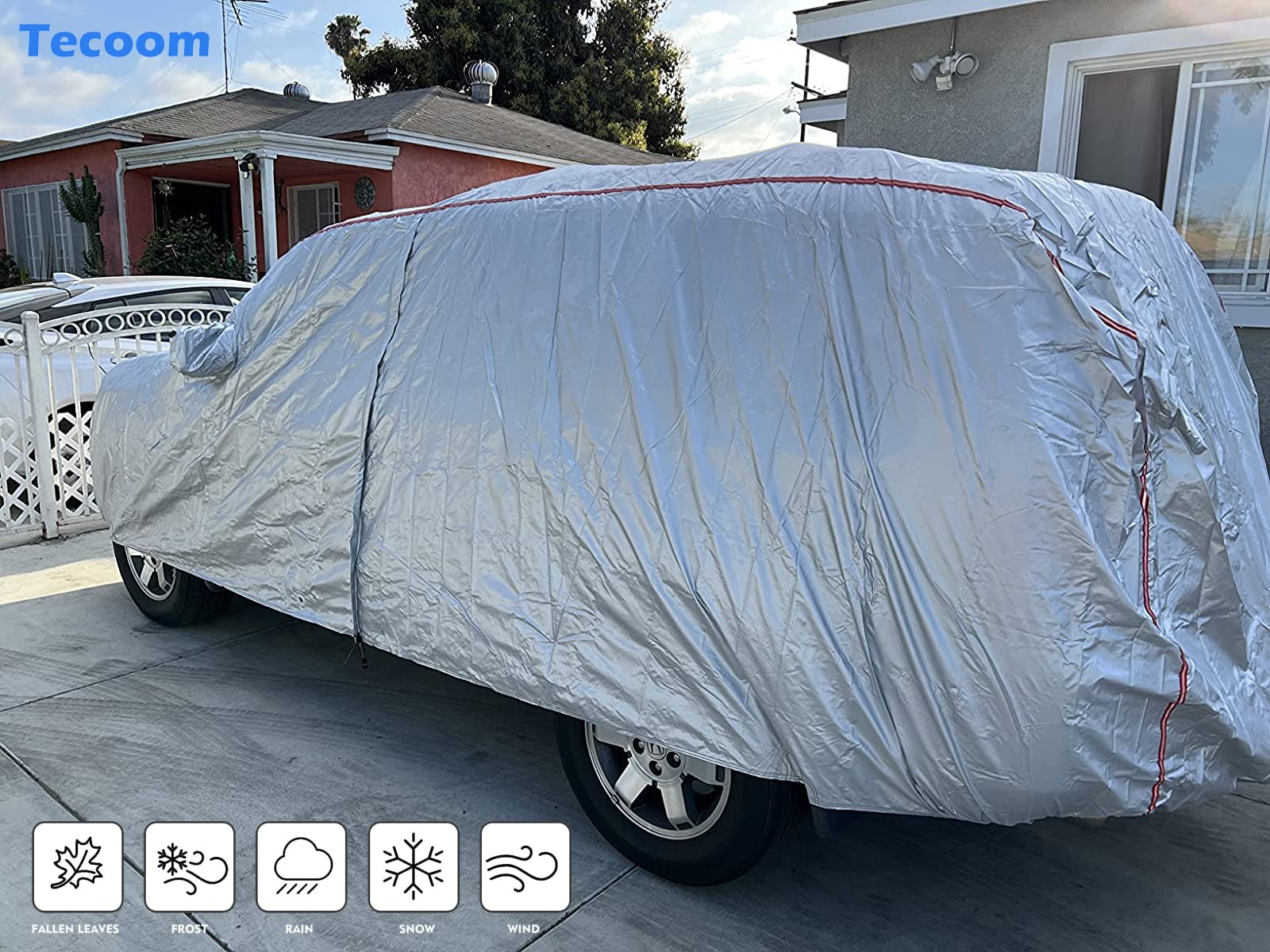 - 【All Weather Protection】Tecoom car covers is perfect for indoor and outdoor use, no matter the sun or the cold weather, protects your car safe from UV rays, snow, rain, frost, sand,dust, leaves, branches, birds dropping.