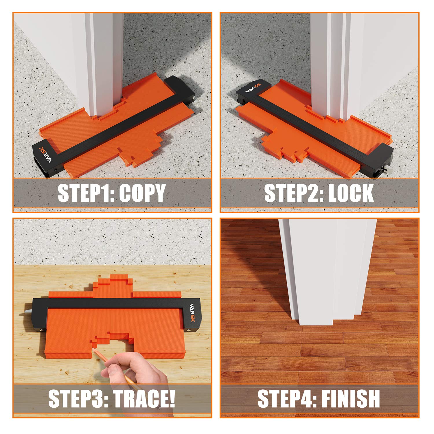 - 【Easy to Use】No matter you are amateur or professional, simply remember three steps: Copy it. Lock it. Trace it. You just press the contour gauge on one of the shapes. Then trace and trim the outline, and cut into shape. VARSK Contour Gauge Shape Duplicator 10×5 inches with Lock can be your lifesaver for DIY project.