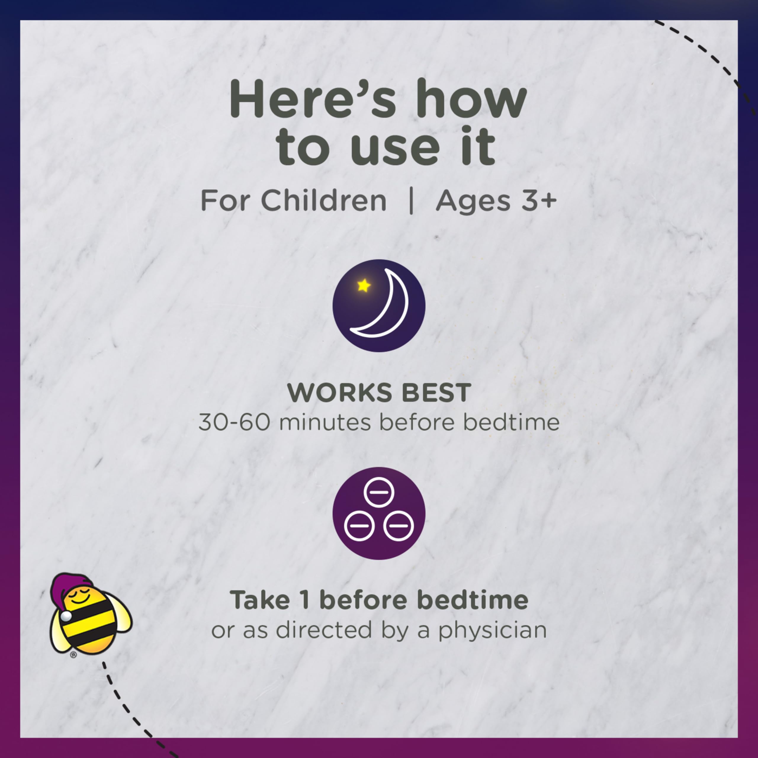 - SAFELY CATCH SOME Zzzs: Help your child’s occasional sleeplessness with our tasty; natural berry flavor; melatonin supplement. Each gummy contains 1 mg of clinically studied melatonin to help promote peaceful sleep in kids 3 years+. *
